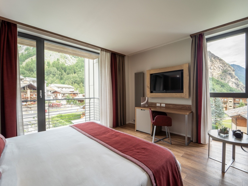 fermato e dove si possono ammirare panorami spettacolari. Dista pochi passi dalla Skyway, la funivia che consente di arrivare sulle cime perennemente innevate del Monte Bianco, alla scoperta della sua maestosità. L’hotel dispone di una piscina panoramica dove trascorrere piacevoli momenti di relax. È stato recentemente ristrutturato rispettando tutte le caratteristiche di eco-sostenibilità.In auto: autostrada A5 fino all'uscita