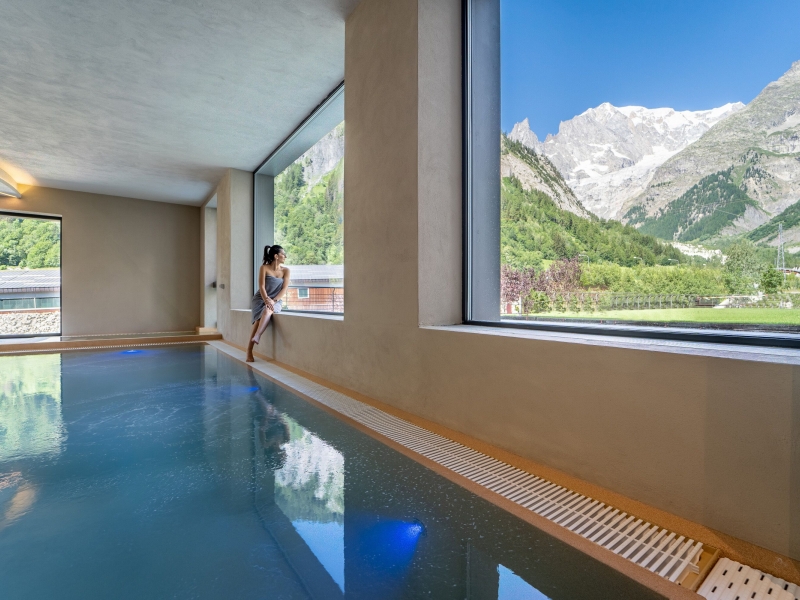 Sport e benessere: All’ interno dell’hotel si trova una piscina panoramica affacciata sulle cime del Monte Bianco e un'area fitness con palestra attrezzata. Per un maggiore relax, a disposizione il centro benessere THwb con sauna, idromassaggio, bagno turco e trattamenti estetici e distensivi.Comprensorio sciistico: Il comprensorio sciistico di Courmayeur Mont Blanc si snoda su due versanti: Val Veny da una parte, ePlan Chécrouit dall’altra, arrivando ai 2.750 m.s.l.mdella Cresta d’Arp. L’innevamento artificiale,