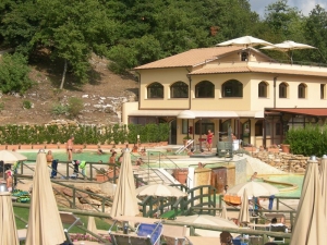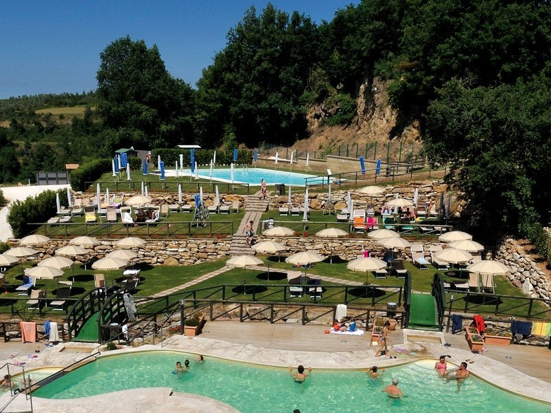 - Piscina con acque naturali da sorgenti a 37,5°, in parte riservata ai bambini, con cascata/idromassaggio